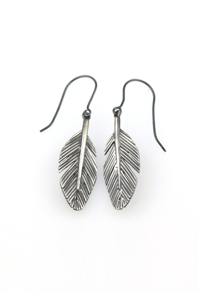 Beautiful sterling silver feather drop earrings from the Blu Feather Spirit collection. These earrings are light and easy to wear and hang just above the jaw line. Perfect for both day and evening wear.